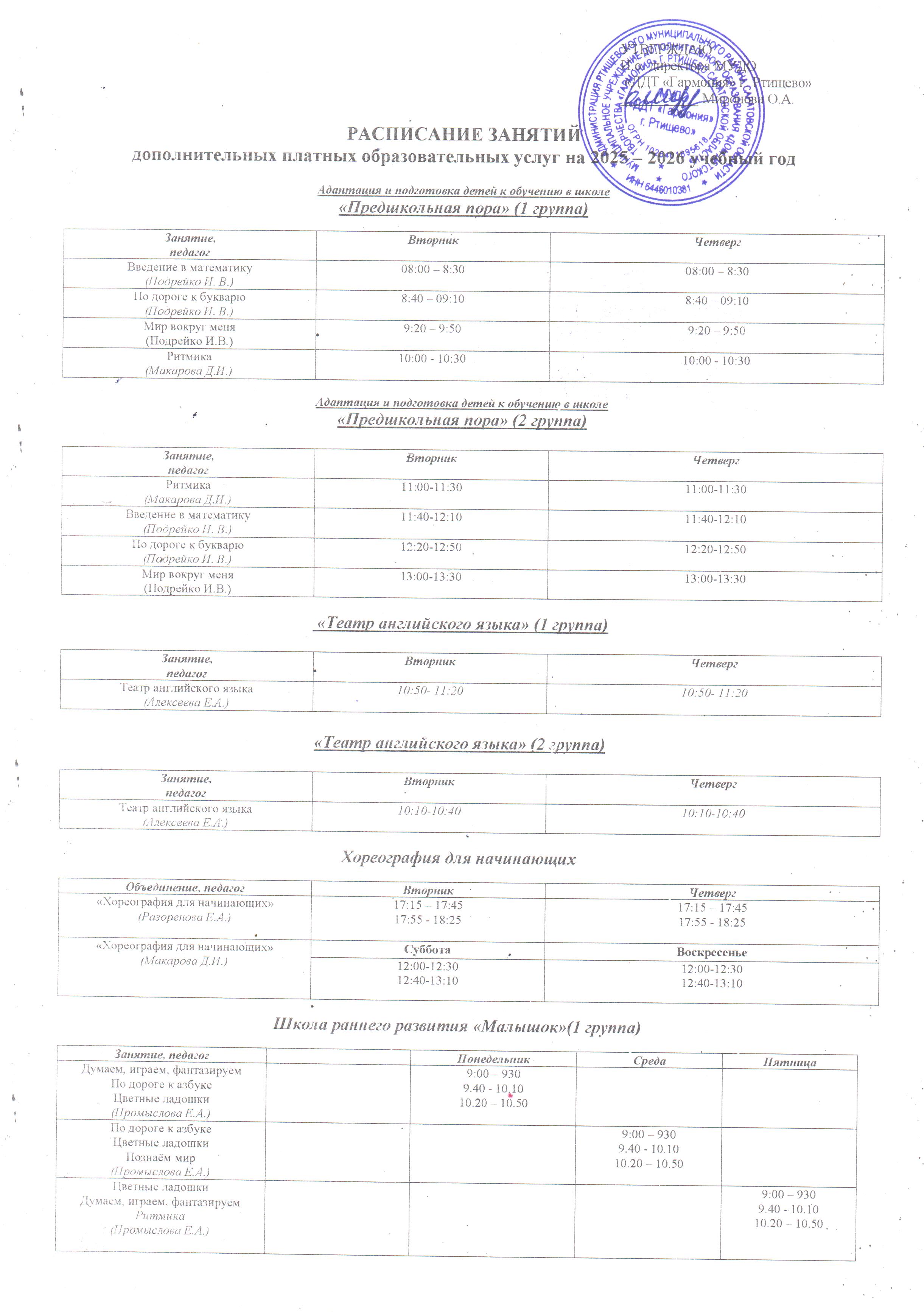 «Адаптация и подготовка детей к обучению в школе студия "Предшкольная пора" Дополнительная общеобразовательная общеразвивающая программа |